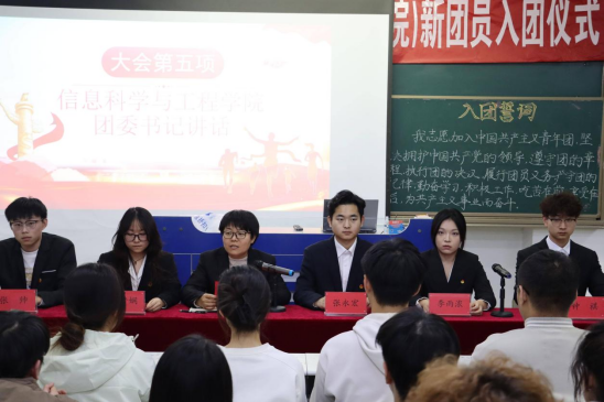 为加强共青团组织建设,引导青年坚定理想信念,增强身份认同与责任担当,信息科学与工程学院(人工智能学院)于2025年11月28日在理工楼2205召开2025-2026学年第一学期新团员入团仪式。学院团委书记王艳丽、107位新发展团员、学生会骨干成员以及2024、2025级各支部团干部参加。
