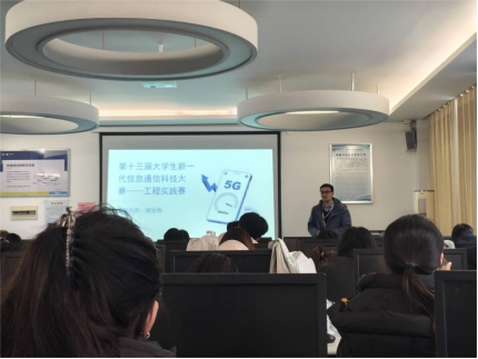 讲座上,靖宏伟老师结合历年赛事情况详细介绍了大赛的背景与发展历程,深入解读了信息通信工程实践赛道的评分标准与备赛策略,为同学们剖析了竞赛的重点、难点及得分关键。在互动环节,同学们围绕比赛难度、5G前沿知识、竞争压力等热点问题踊跃提问,靖宏伟老师逐一细致解答,现场氛围热烈。
