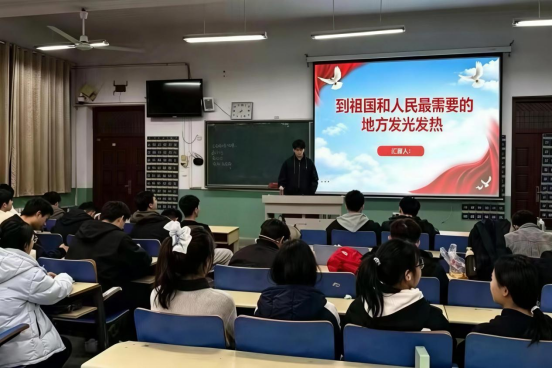 此次活动由各班团支书担任宣讲员,围绕西部计划项目内涵、报名流程、服务内容、政策保障,以及山东计划·枣庄项目展开详细讲解。重点介绍了不同服务专项的具体方向,清晰说明了核心福利待遇,并展示了“枣青乡伴”本地岗位信息,帮助同学们直观了解了服务方向与就业优势。同时,活动现场还分享了优秀志愿者扎根基层、服务群众的真实案例,用鲜活事例展现西部计划志愿者的责任担当与成长蜕变。在交流环节,同学们围绕报名条件、志愿填报、服务期限、后续发展等问题积极提问,宣讲员逐一耐心解答,现场氛围热烈浓厚。
